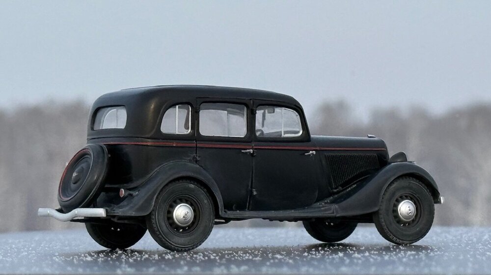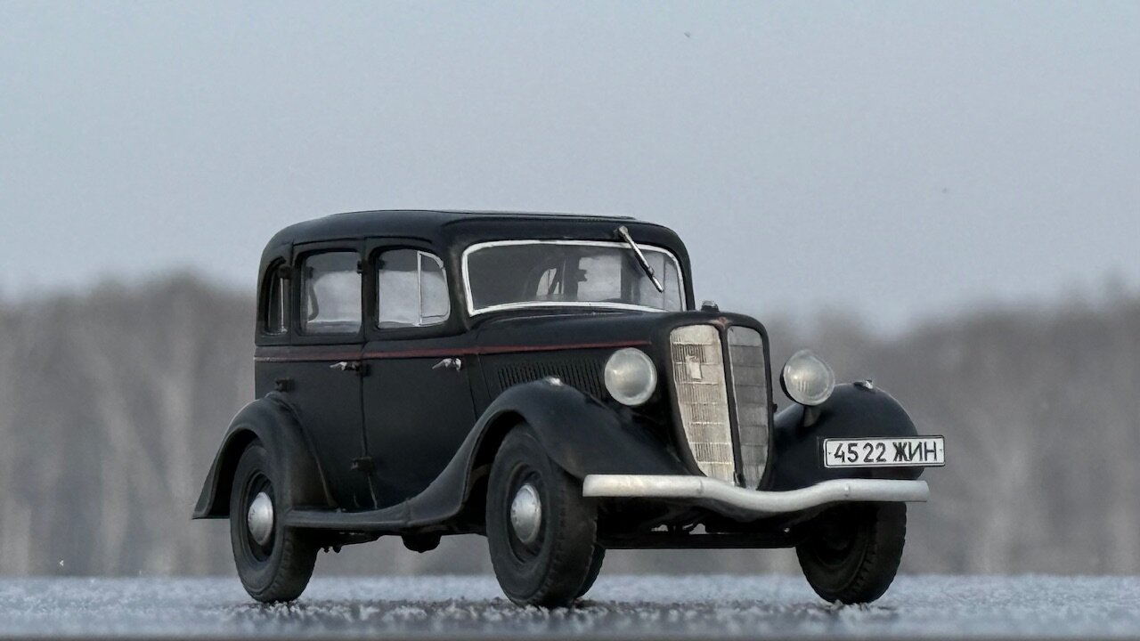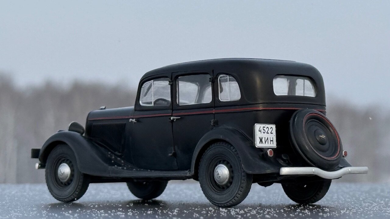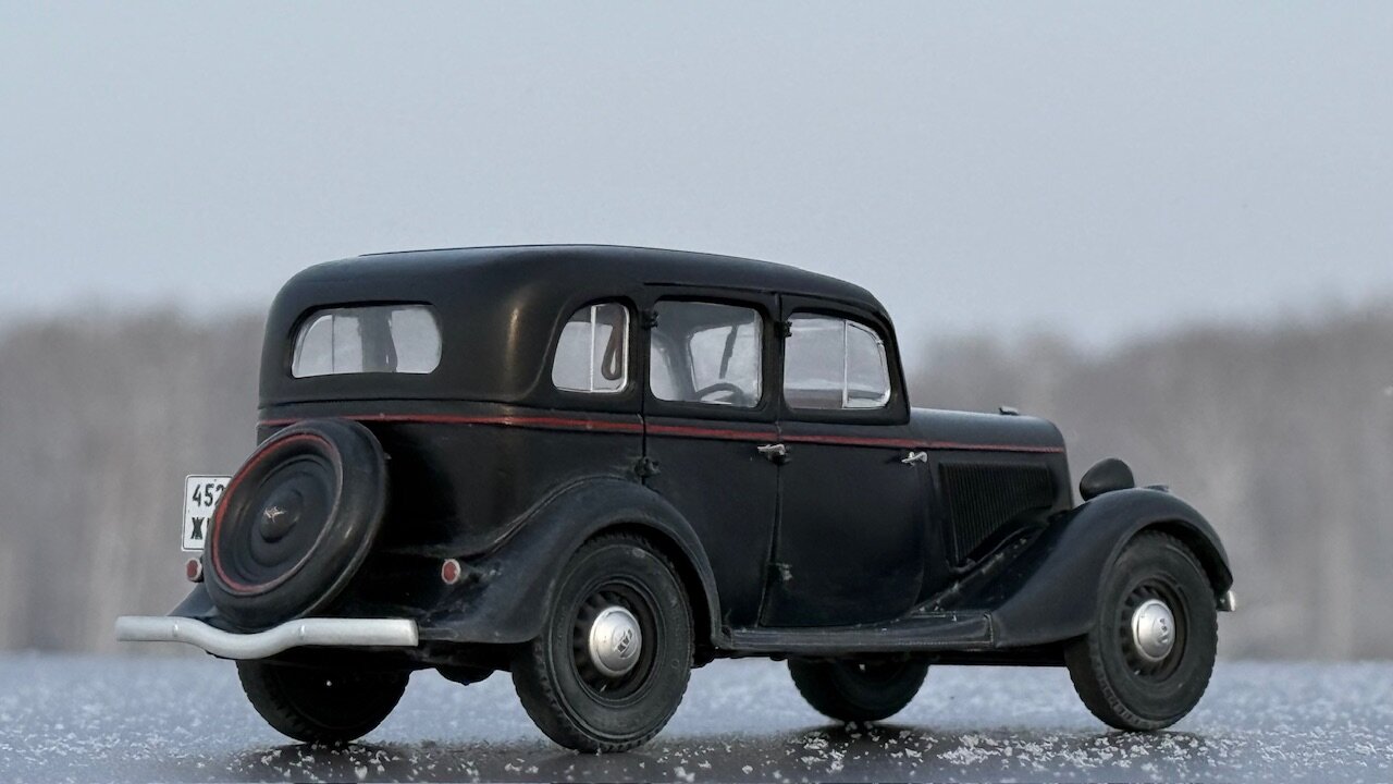 Существует некоторый негласный канон, по которому принято строить военные грузовики в 35 масштабе. Так же существует канон, согласно которому собирают гражданские автомобили в 24 масштабе. А вот что делать, если в руках оказалась модель легковой гражданской машины в масштабе 1/35 - история умалчивает. Собственно, выбор у меня был небольшой. Вооружиться теми небогатыми навыками, коими я обладаю в нелетающей тематике, и постараться сделать так, чтобы результат не выглядел противоестественно. Про матчасть, понятное дело, в этот раз я вообще не в курсе. Что там и насколько похоже на себя настоящего пускай отвечают знатоки в данном направлении. Могу только сказать, что к самому пластику в меня вопросов никаких, всё собралось отлично. Единственное, не самым удачным образом сделано сочленение задней полусферы аж из четырёх деталей, все стыки между которыми пришлось шпатлевать, при том, в частности, уже по окрашенному промежуточному результату. А в остальном всё сошлось очень даже благочестиво. Окрасил Пацификом,традиционно немного припылил пигментом от Wilder. Декали приваривал Маркфитом от Тамии. Чуть-чуть подточил пятна контакта на покрышках и добавил номера от Микродизайна. Приятного просмотра.