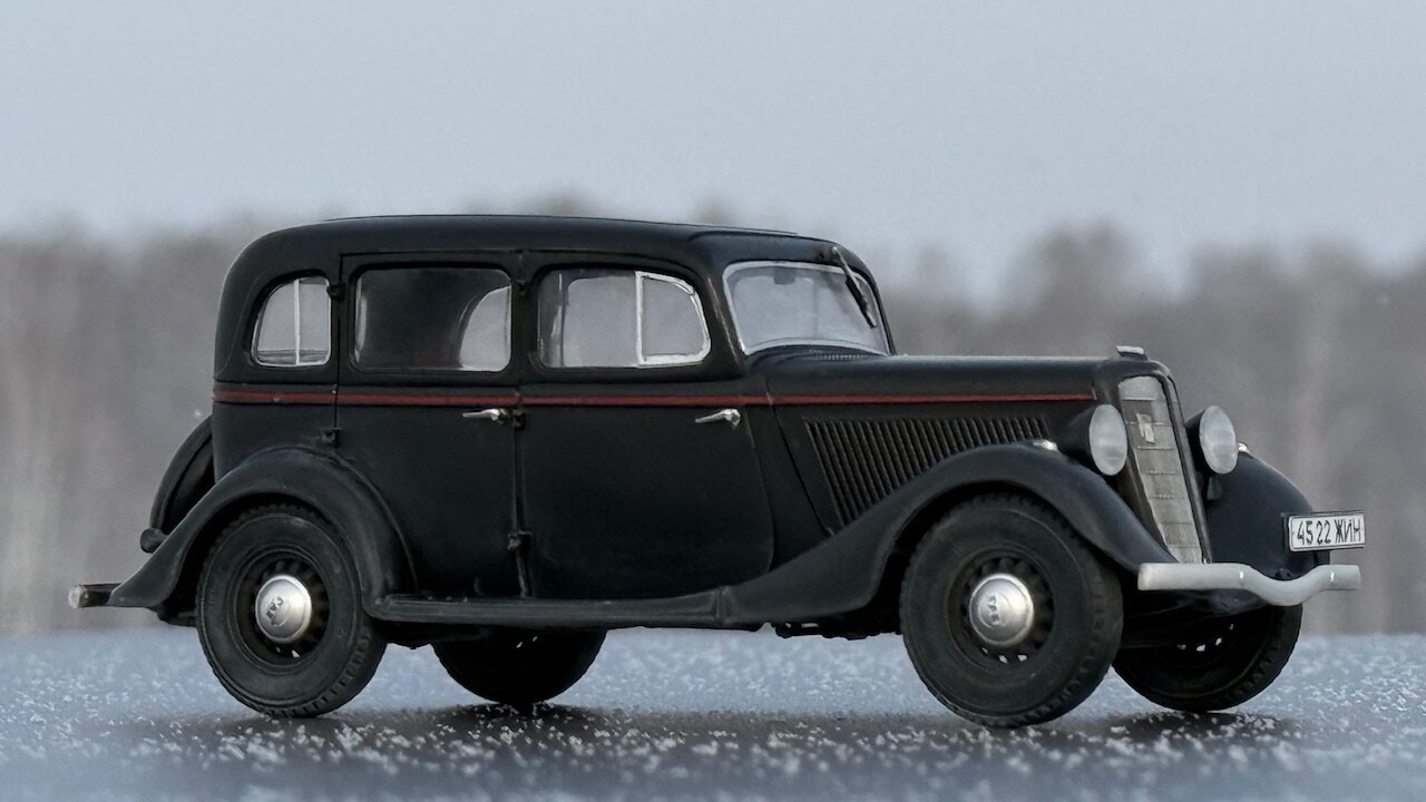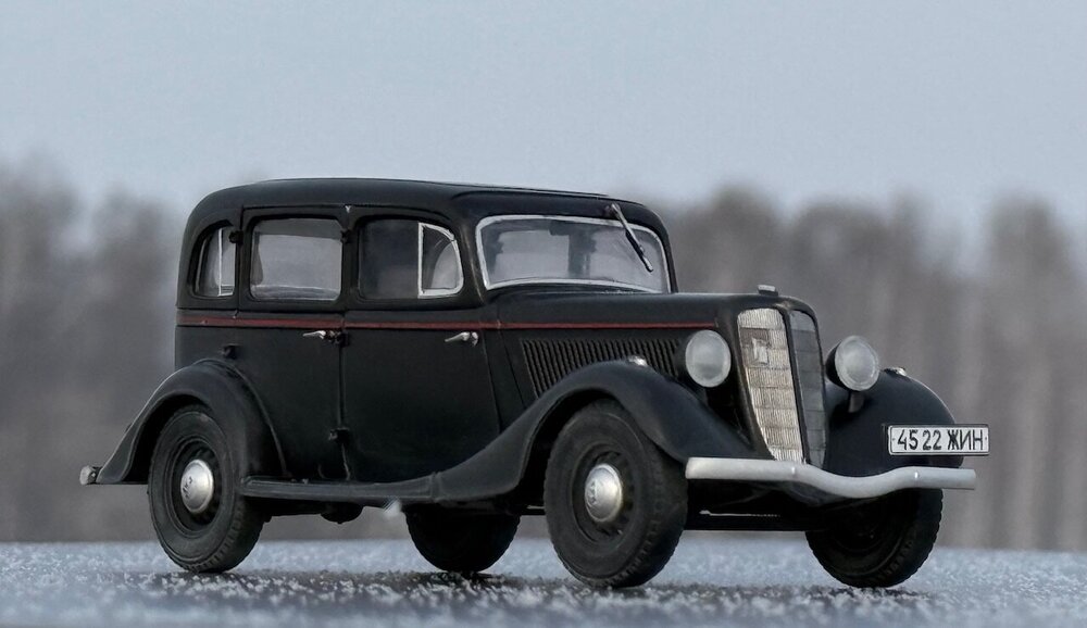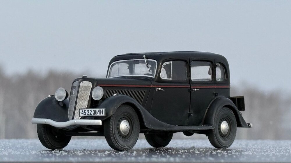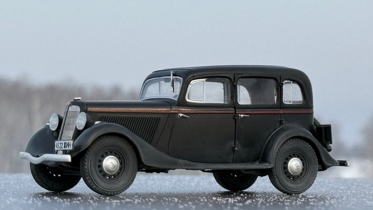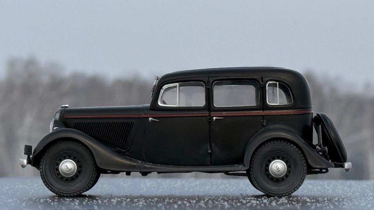 Существует некоторый негласный канон, по которому принято строить военные грузовики в 35 масштабе. Так же существует канон, согласно которому собирают гражданские автомобили в 24 масштабе. А вот что делать, если в руках оказалась модель легковой гражданской машины в масштабе 1/35 - история умалчивает. Собственно, выбор у меня был небольшой. Вооружиться теми небогатыми навыками, коими я обладаю в нелетающей тематике, и постараться сделать так, чтобы результат не выглядел противоестественно. Про матчасть, понятное дело, в этот раз я вообще не в курсе. Что там и насколько похоже на себя настоящего пускай отвечают знатоки в данном направлении. Могу только сказать, что к самому пластику в меня вопросов никаких, всё собралось отлично. Единственное, не самым удачным образом сделано сочленение задней полусферы аж из четырёх деталей, все стыки между которыми пришлось шпатлевать, при том, в частности, уже по окрашенному промежуточному результату. А в остальном всё сошлось очень даже благочестиво. Окрасил Пацификом,традиционно немного припылил пигментом от Wilder. Декали приваривал Маркфитом от Тамии. Чуть-чуть подточил пятна контакта на покрышках и добавил номера от Микродизайна. Приятного просмотра.