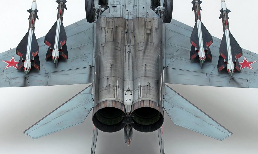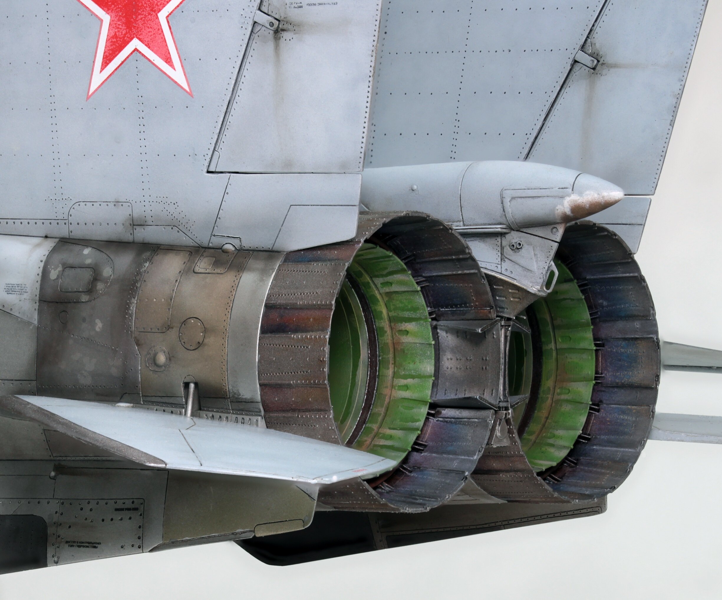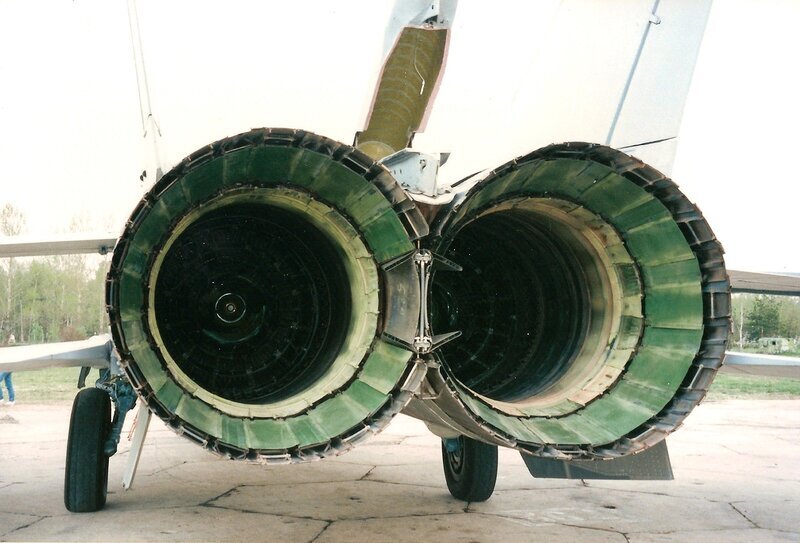 6. Внутренности сопл на самом деле зеленые? Я конечно не знаю точно насчет МиГ-25, но в сопла МиГ-31 я лазил и не раз. Там все закопченое черное и обожженное.