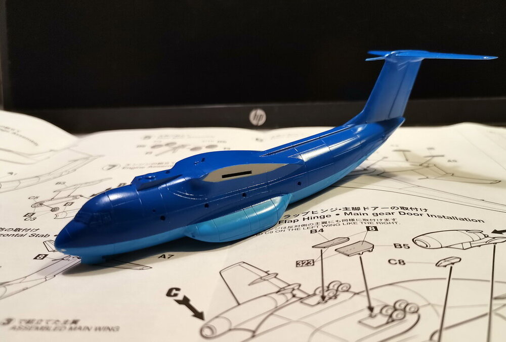 Ну, в целом, махинации с моментальными приминаниями скотча удались, подпылов в узких местах не выявлено. Все эти голубые/синие цвета намешаны всего из 2-х баночек: акриловых синего Х-4 и белой Х-2 от Tamiya.