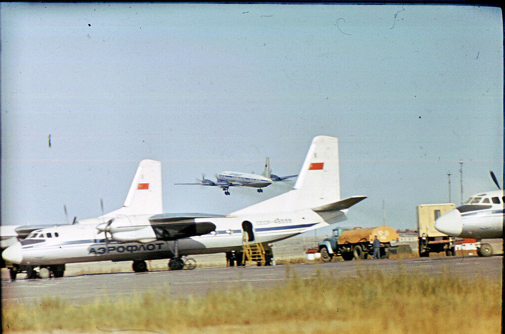 На всех трех совершенно явно серый (видно на соединении воздухозаборнка с мотогондолой). Вообще, сколько я видел "живьем" Ан-24, начиная с 1979 года, ни одного "серебряного" не было. Все серые.