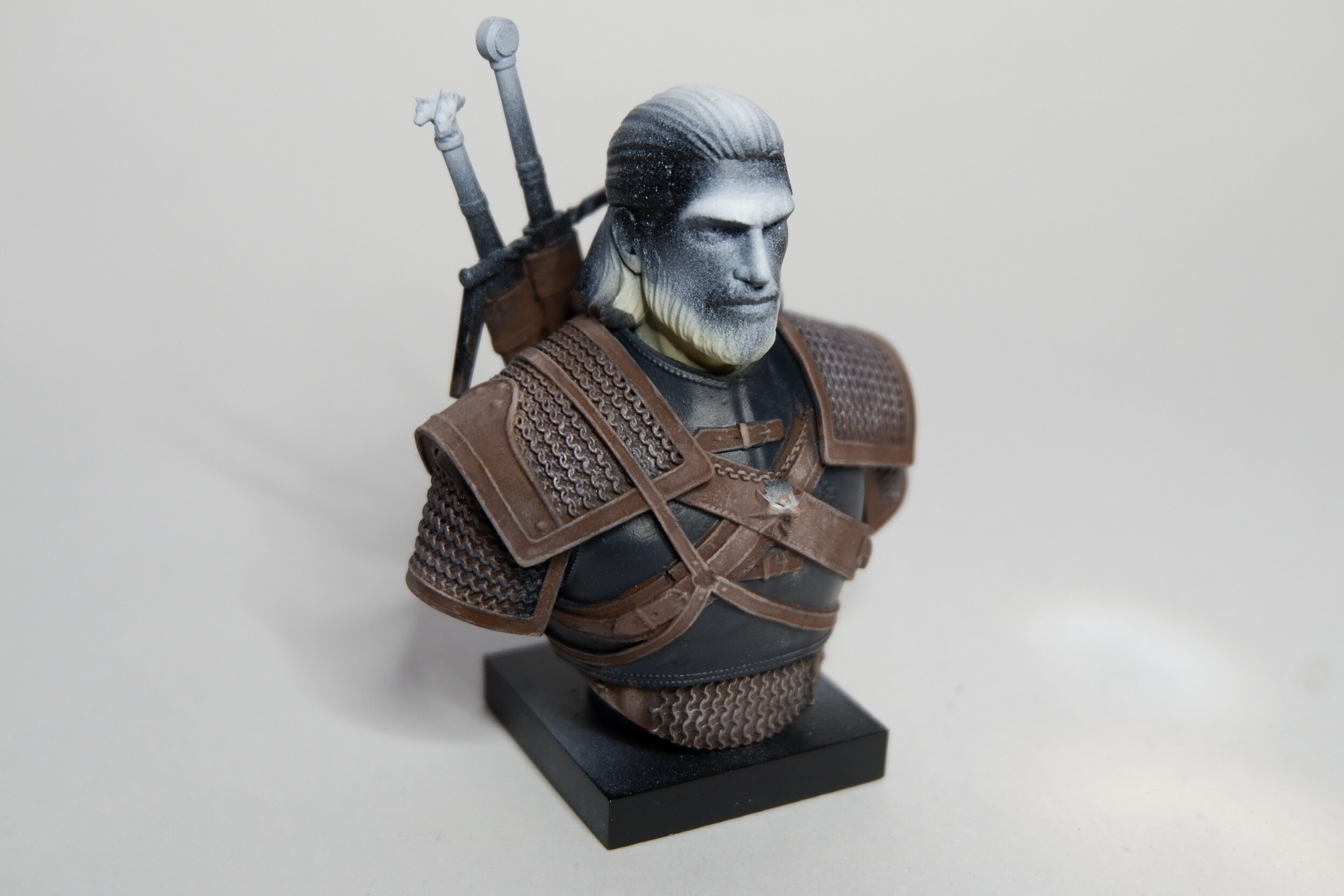 Загрунтовал, подубрал следы печати Задул в черный И перешел к высветлениям Дальше уже покраска в базовые цвета. Начинать с лица не хочу, но думаю будет удобно сначала надуть шею, замаскировать и переходить уже к броне