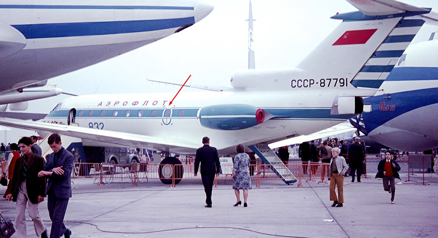 Честно говоря, именно на этой фотографии они выглядят откровенно разными. Но не буду спорить, я тут не специалист. Ради интереса перерыл свой архив по Як-40 и не нашел ни одной цветной фотографии такой ливреи, где бы птичка была красной. Их чаще всего нет, либо они синие. Вот надпись АЭРОФЛОТ попалась синяя - кстати 87490, недалеко от нашего борта. Хотя это видимо уникальная машина. Возможно красные птички и были, я с удовольствием пополню свой архив новыми фото, если найдутся. Если есть у кого желание вглядываться в чб фото для определения цвета - вот еще 87488-я. Цветных его фото, к сожалению, не нашел.