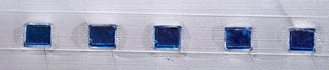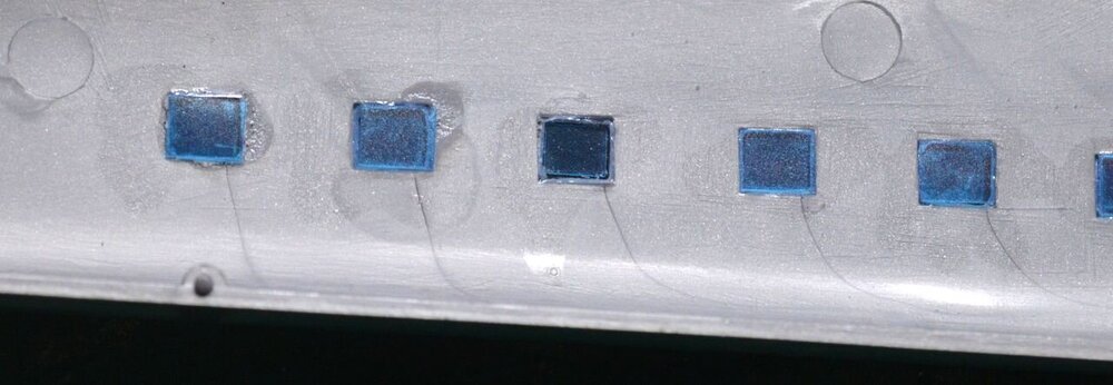 2. Нарезал масок и по линеечке (где можно) нанес маски на окошки. Маски снаружи - поменьше внутри - побольше (на этой фотографии увидел что одно окошко осталось без маски. Это о пользе выкладывания фотографий о работе в процессе на форуме - дает возможность увидеть огрехи)