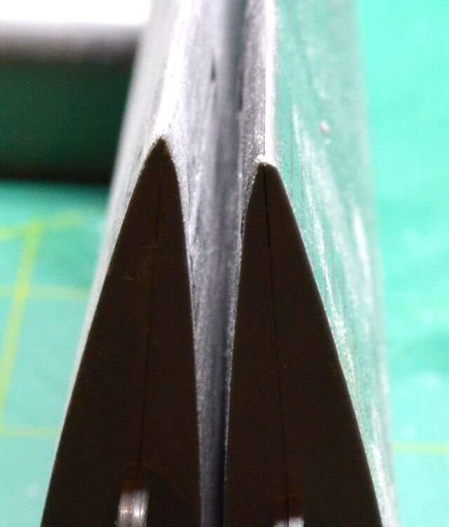 2. Решил начать сборку этого "чуда" с крыльев. Склеил, при помощи наждачки номер 320 снес клепку. На ощупь - гладко, но следы от клепки все еще видны. Слева - обработанное крыло, справа - еще не тронутое А вот для того что-бы привести задник кромки в более-менее удобоваримый вид, пришлось использовать уже наждачку с номером 200! (Пока - мой рекорд!) Справа как было, слева - что стало. Не думаю что это окончательный вариант Ну и что-бы два раза не ходить, прошелся шкуркой по фюзеляжу что-бы убрать клепку. Это пока только предварителный подход, будет еще не один. ДРОВА!!!!