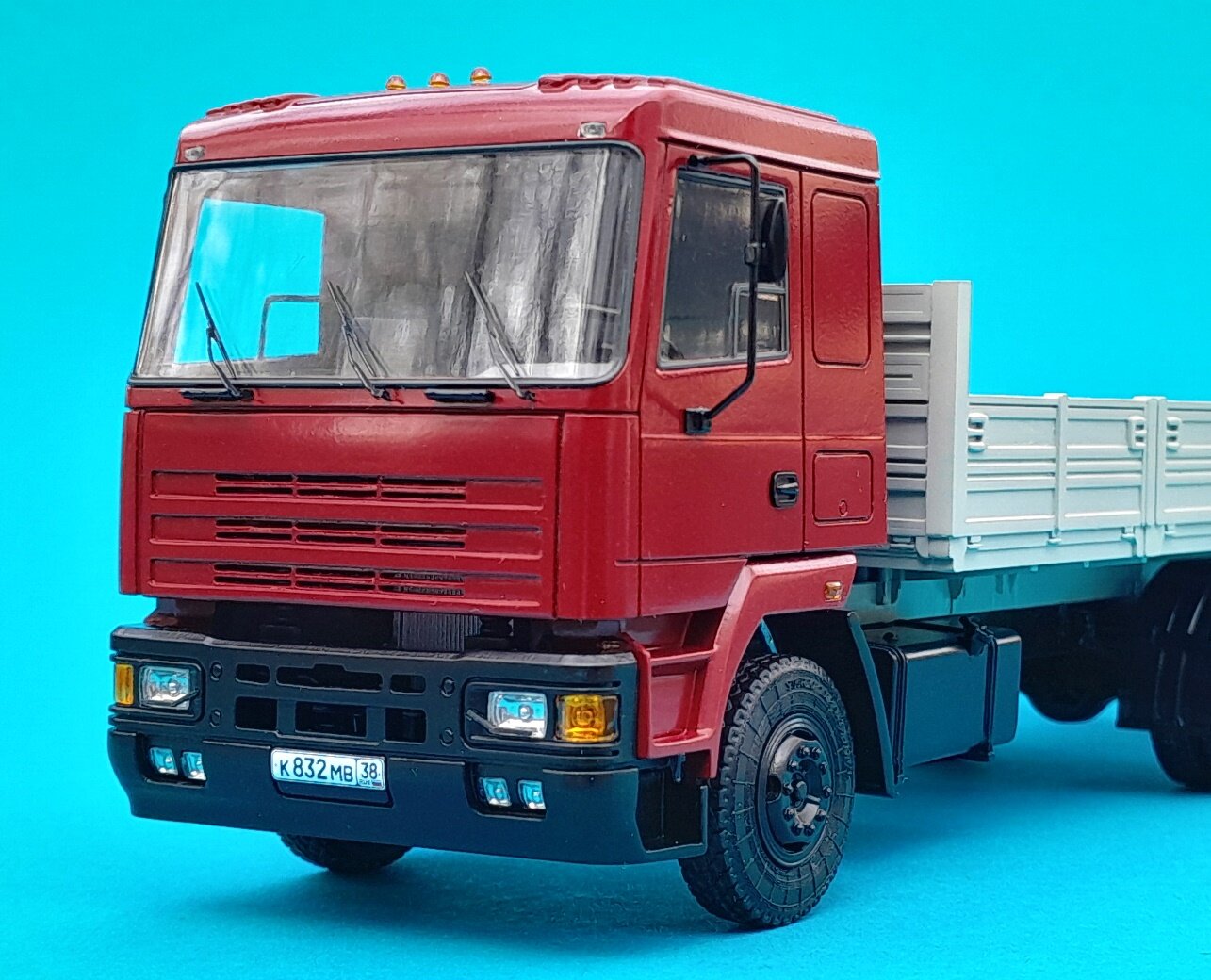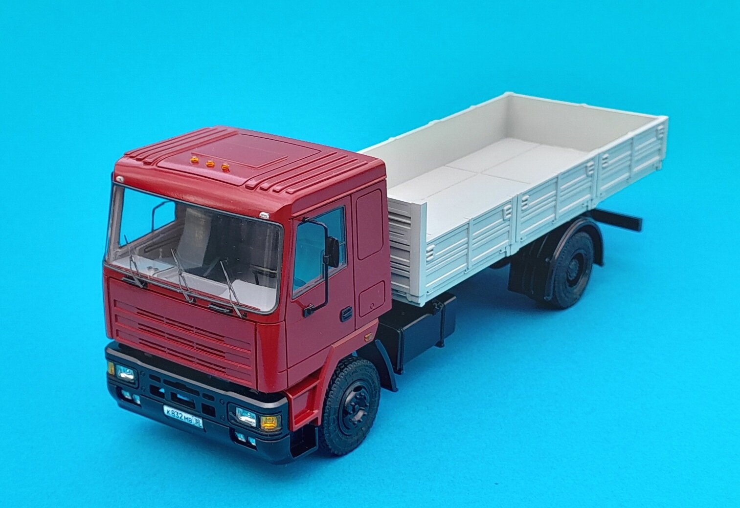 Друзья всем привет! Опять я с игрушкой-заказушкой. Камаз 5315м смола от АВД и как всегда кривая. Неспешно в перерыве между ремонтом запилил как смог эту корягу. Вишневый цвет кабины если подбирать то заведомо будет много брака, цвет непростой, стало жаль тратить мотип и заказал от Хобби линк. Трудно после лакового баллонного Мотипа перестроится на авто краски . Дуть 1,5 очка и выше это не мое, и жидкость краски (хотя в рекомендациях ничего разбавлять не нужно) пришлось разбавить 647 в 4 раза под мои 0,8... Ну а так - база как база, как и все краски с автоподбора, матовая поверхность под дальнейший лак. Залачил Ганзой в глянец и немного приглушил. По правде сказать относительно современные машинки мне не нравятся, поэтому все без души, собрал- покрасил и ладно.