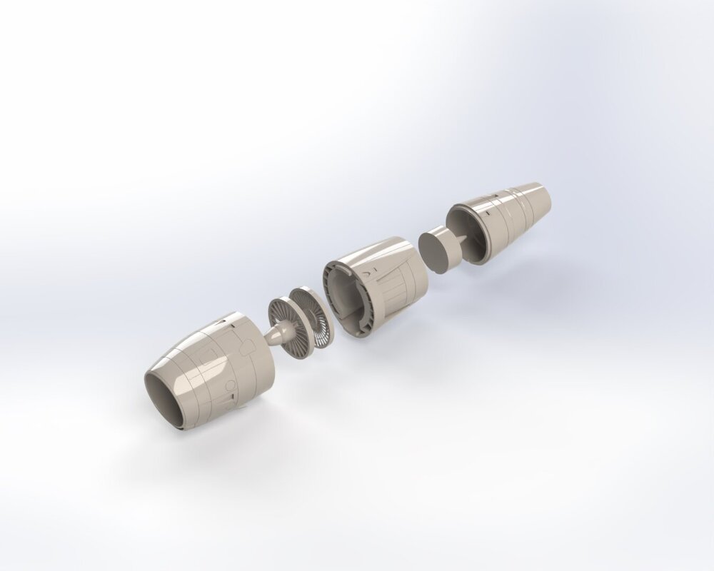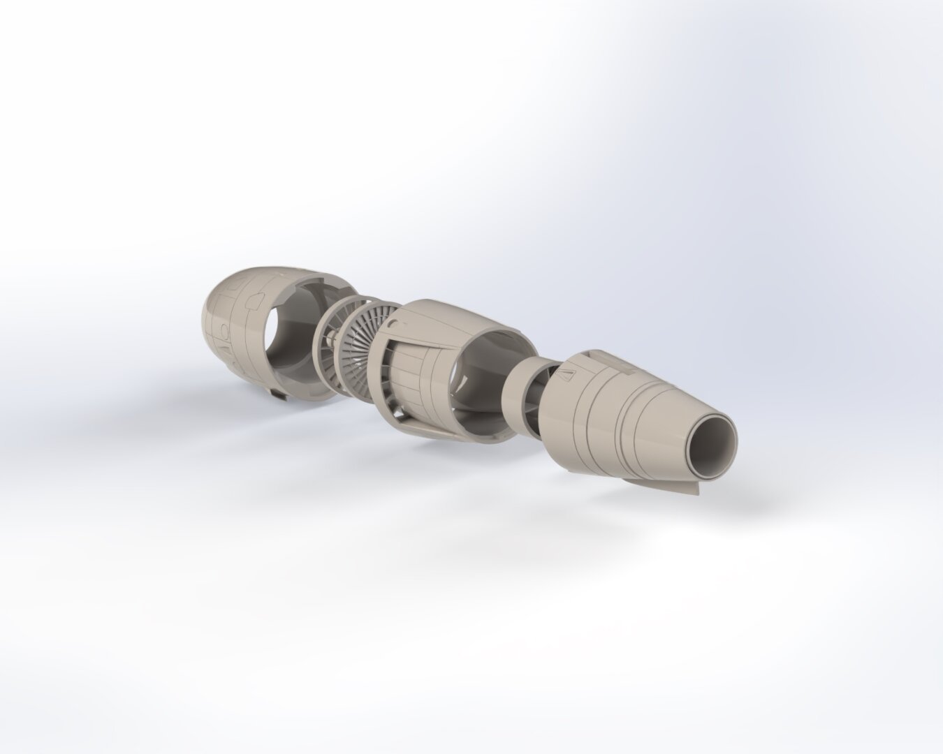 Михаил, образ тут очень такой "собирательный". Вентилятор похож немного на GE90 (должно быть 22 лопасти). Компрессор не похож ни на что из современных двигателей (слишком мало ступеней). Турбины - тоже далеки от реальности если это GE90-110 (должно быть 2+6). "Выхлоп" ни к чему лично я привязать не могу, но что-то напоминает! (Склероз уже начинается?). Или я не вижу на фотографиях или полностью отсутствуют лопатки статорных колец между ступенями компрессоров и турбин. (это обязательно на всех двигателях). Так что я считаю что это "по мотивам" и соответственно красить можно как хочется.