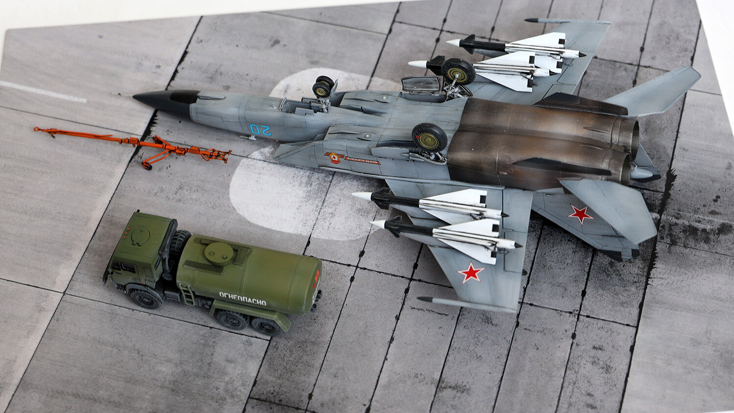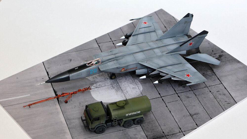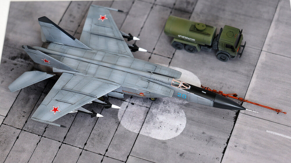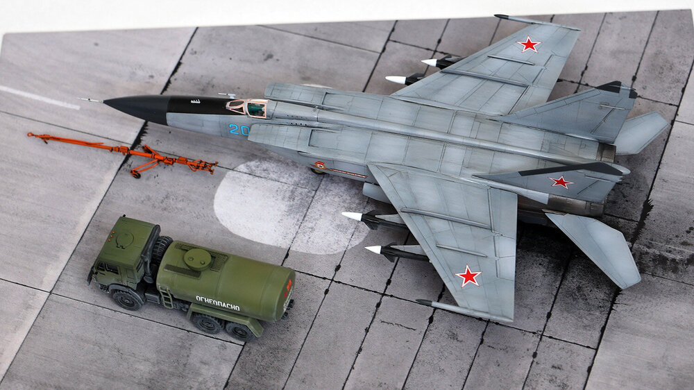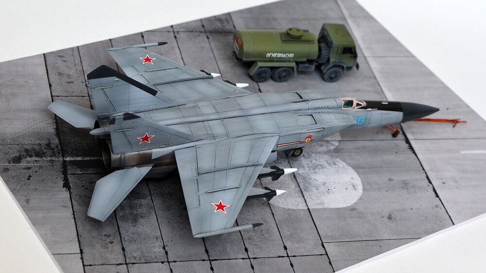 Хочу представить вашему вниманию попытку окунуться в реактивную авиацию 72 масштаба. Правда, набор для старта я выбрал по незнанию далеко не самый простой. Если сказать откровенно, то пластик - дуб дубом. Детали отлиты с большим количеством облоя, ничего друг к другу не подходит и по большинству швов требует заделки дошираком. Детализация минимальна настолько, насколько это возможно. Кабина вообще пустая. Ну, то есть если присутствует желание построить именно модель самолёта, то сил и допов сюда надо вкладывать очень много. Я же ограничился искоробочной сборкой. Даже декаль использовал только родную, которая не содержит технички вовсе. С другой стороны, мне в своё время напихали за неё на МиГ-25 в 48 масштабе, мол, пёстро сильно, так что я думаю, что здесь её отсутствие, скорее, даже плюс. Основной цвет накрашивал тремя оттенками серого по чёрному прешейдингу, металлики на двигателях - разные сочетания красок от ARM.PNT, натёртые сверху пудреницами от Тамии. Водило от МиГ-29 добавлено исключительно антуражу ради. Подставка - готовое решение от TempModels. Приятного просмотра.
