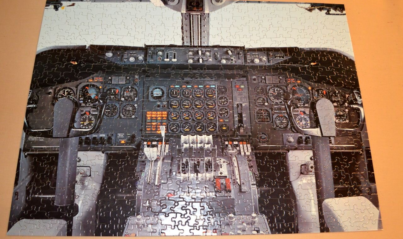 4. Длинный перерыв в работе над моделью был вызван 2 причинами: праздниками (многими) и вот этой вот коробкой, которую я купил в конце июня уже прошлого, 2025 года. На праздники приехала дочка и мы вдвоем начали это дело собирать. Начали-то вместе, а вот заканчивать мне пришлось одному Но сделал! Теперь это надо в рамку и на стенку. "Всего" 650 кусочков, но форму совсем не стандартные, так что пришлось повозиться. Теперь можно вернуться к модельке. Мне тут Женя Мардар (который @djmard) подарил прозрачную смолу и я использовал эту смолу для выведения всех поверхностей сопряжения остекления с фюзеляжем. Смола настолько прозрачная, что её практически и не видно. С "мнадцатой" попытки наконец-то мне удалось поймать форму остекления и вырезать маски. Теперь третья переделка - двери, которые я хочу сделать открывающимися. Вернее так - они открывающиеся изначально, но и в "салоне" и на внутренней стороне дверей при этом торчат "брусы" похожие на те, которыми в кино закрывают ворота крепостей. Поэтому делать петли надо с нуля. Плюс - на реальном самолете двери двигались синхронно - вращением одной ручки. Идея как этого достичь есть, думаю...