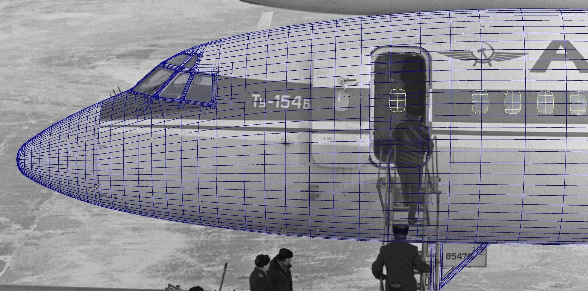 Черно-белая пленка нечувствительна к красному цвету (недаром черно-белые фотографии можно печатать при красном свете), поэтому на черно-белых фото красный выглядит идентично черному. Надпись АЭРОФЛОТ заметно темнее и контрастнее птички и читалайна, что говорит о ее красном цвете, в отличие от синих читлайна и птички.