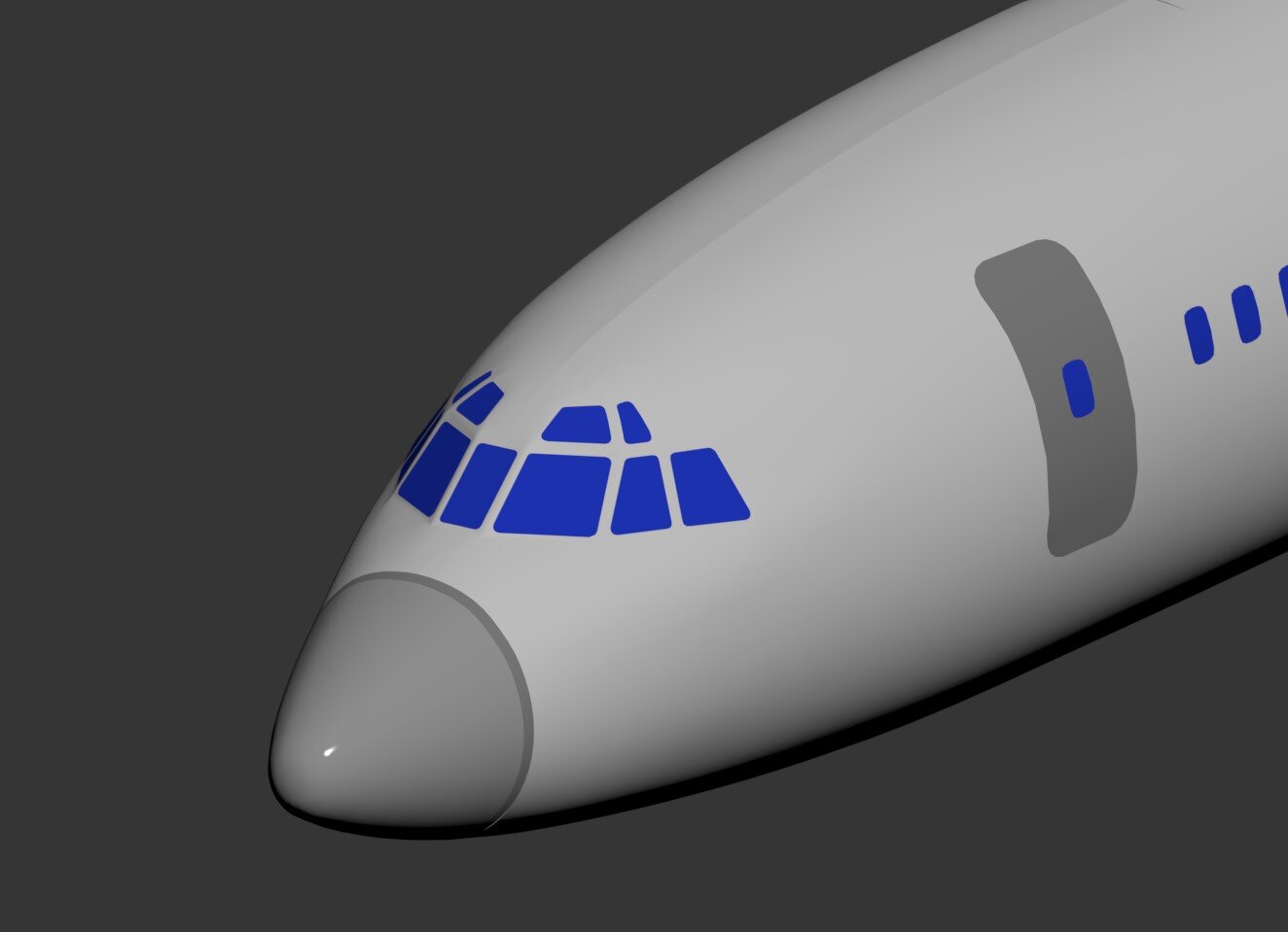 Просто обозначу, что работа не совсем ещё увяла. Но ожидаемо замедлилась - стало туговато при переходе к более плотной проработке. Занимаюсь "головой". Вывел и пропилил пилотское остекление. Пока еще не все выгладил по сетке, но базовые формы в этой части, надеюсь - всё. Меня уже устраивает Итак - дня четыре бесконечного передвигания стоек и углов окошек туда-сюда.