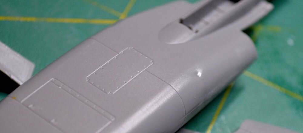 Наращиваем хвост. Облагораживаем безобразное исполнение киля. Он весь горбатый при обилии расшивки, которая не на каждом доступном чертеже имеется. Произнося матершинные заклинания, выводим контуры киля, сводим профиль в единое целое, и в соответствии с имеющимся чертежом, кривенько-корявенько режем расшивку на новом участке и восстанавливаем поврежденную заводскую расшивку. Я так понимаю, что можно было этим не заморачиваться, поскольку на темно-синем фоне никакой расшивки видно не будет (не белым же ее выделять... ). Разве что только на отсвет. Такой рисунок расшивки предлагает чертеж