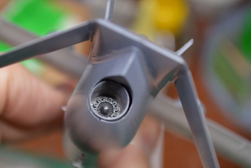 Финальная стадия. Перекрасил серый радиопрозрачный в более темный, нанес декали, вставил сопла. Теперь один из главных моментов - шасси