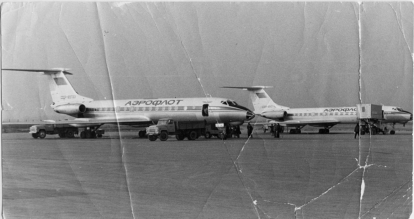 Половина - серые, а половина похожа не серебристые, но это может оказаться игрой света и полиграфическими погрешностями. В стандарте 1973 г. серебра как основы окраски, вроде, не было. Нет якорей для зацепки. Если только кто узнает характерные здания (например, аэровокзал в Петропавловске какого года постройки? В интернете нашел только, что ИВПП появилась в начале 70-х, может быть, реконструкция коснулась и аэровокзала. Но необязательно). А так, это могут быть 70-80-е.