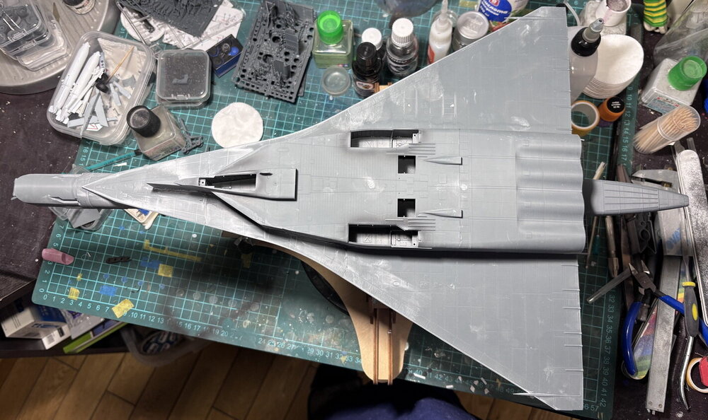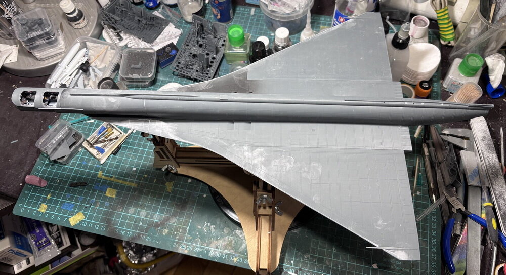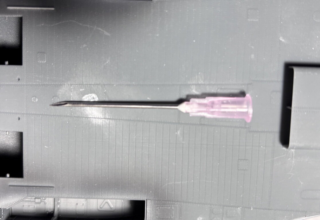Двигаюсь дальше. Склеил все большие подсборки. Крылья крепил на штифтах. Арма предложила для этого инъекционные иглы 0,6. Мне это показалось ну очень не серьёзным. Заменил на иглы 1,2. И для этого рассверлил отверстия под штифты под новый диаметр. Пишу эту элементарщину с одной целю. Во время сверления полукрыльев обнаружил, что внутри там есть какая-то силовая структура, т.е. оно частично полое. Сверло и провалилось, чуть обшивку не пропорол сверлом. Так что аккуратнее. Хоть Арма и обещала чудес со стыковкой, ничего у них не получилось. И без шпаклевки не обойтись. Проблема только в том, как сохранить расшивку и клепку в проблемных местах. И теперь придется разобрать на столе. Не помещается он в этом бардаке.