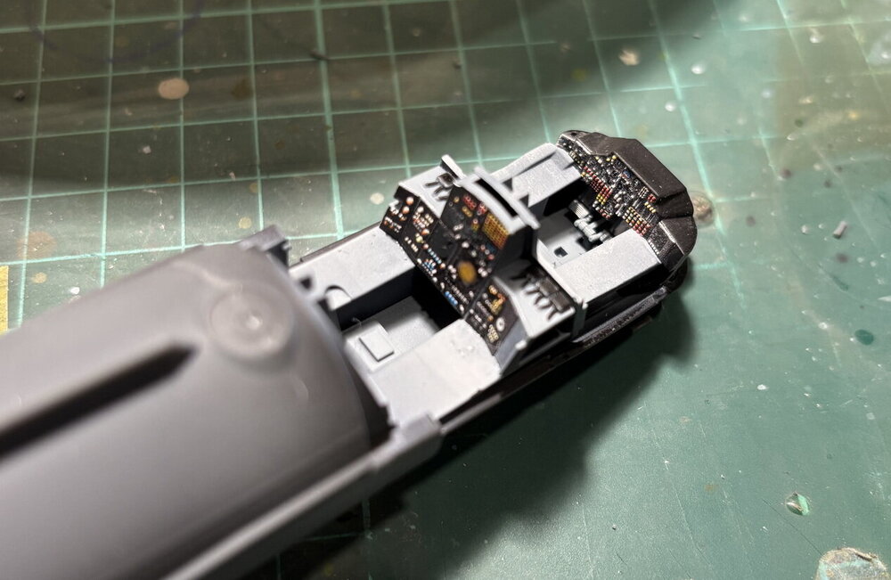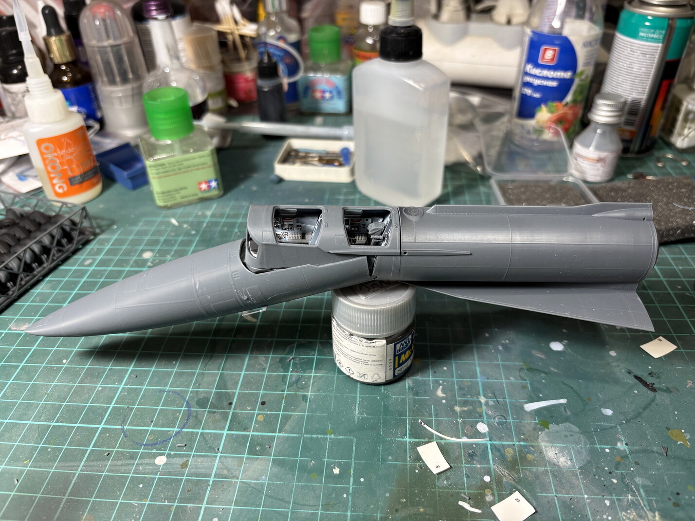 Начну потихоньку. Естественно с кабины, используя 3-d декали. Место под приборы и начинку кабины загрунтовал и покрасил в базовый серый. Кстати, неоднократно встречал сообщения что грунтовка и краска не держатся на печатных деталях. Я использую черный грунт от Хася моделист и никаких проблем пока не было. Ну и кабинка почти готовая. Кресел не хватает, но их потом установлю. На сухую собрал НЧФ. Пока вроде все сходиться без проблем. Дальше буду собирать всякую мелочь, т.к. на основной детали фюзеляжа обнаружился дефект. Арма обещала заменить деталь но пока ещё не отправляла. Ждем-с.
