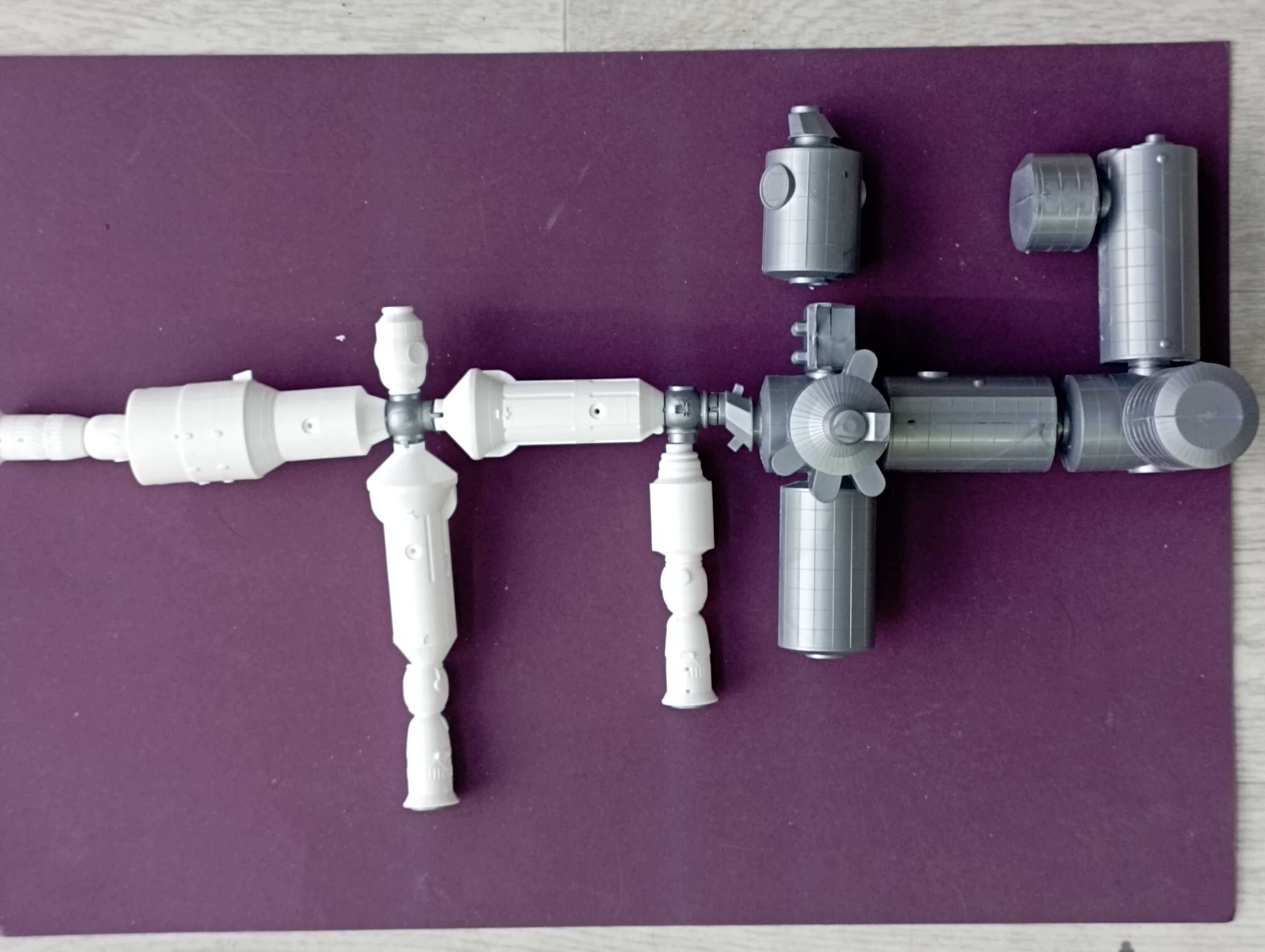 Wishmaster Опубликовано 22 августа Жалоба Поделиться Опубликовано 22 августа Слышал я, что Арма новую станцию Мир разрабатывает, так что наверное будет еще один запил, а пока обещанная МКС Порылся я в коробке, поизучал ее историю и вот некоторые выводы: Модель 2010 года, но в ней деталей с запасом, в том числе и те, что позволяют собрать модули, пристыкованные позже, к примеру модуль "Наука" прибыл на МКС в 2021 году, но в наборе он уже есть. Еще на литниках куча всяких левых девайсов, которые видимо так и не были реализованы, во всяком случае ни на одной фотографии за разные годы я такого не видел, а если бы оно хоть раз появилось, то вряд ли кто его стал бы отстыковывать и выкидывать. Детализация набора не лучше, чем у Мира, мелких деталек еще меньше, хоть самому из добра и палок сочинять, хорошо хоть фоток МКС в инете много, разве что стыкуемость лучше стала. Ферма, на которой солнечные панели и радиаторы висят и вовсе модели 70х годов напоминает, до кучи сквозь нее тянется длинный металлический профиль для жесткости, иначе видимо вся эта конструкция под собственным весом развалится. Наверное по этой же причине сама ферма так дубово сделана, 70 см в длину как никак... Жаль нет Крю Дрэгона или Старлайнера в комплекте, к буржуйскому сегменту пристыковать нечего, но Дракона наверное можно слепить из того же, из чего планируется лепить мелочевку. Скоро будут картинки процесса, а пока ловите залипательный мультик сборки настоящей МКС Жаль ВИП нельзя построить в этой же последовательности из за особенностей модели. А тут еще изнутри можно полазить https://esamultimedia.esa.int/multimedia/virtual-tour-iss/ 1 Ссылка на комментарий Поделиться на другие сайты Поделиться