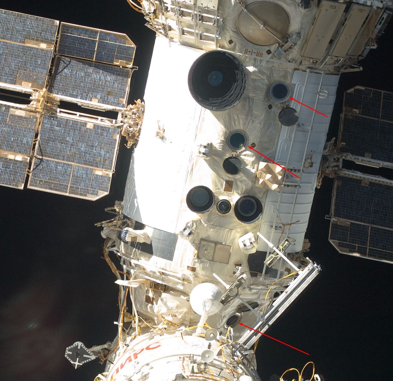 Artman Опубликовано 24 сентября Жалоба Поделиться Опубликовано 24 сентября (изменено) Этот вид возможно тоже из окуляров тех снят - по краю проема тряпочка заворачивается, которая снаружи модуля видна Вид на сам купол откуда-то сняли Примерный ракурс сьемки, чтобы в кадре были "цистерна" и ПИРС. И не похоже, чтобы из шаттла Изменено 24 сентября пользователем Artman Ссылка на комментарий Поделиться на другие сайты Поделиться