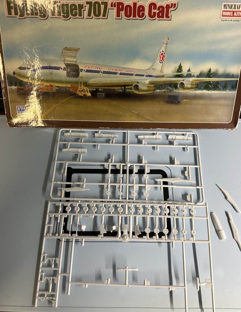 Популярный пост djmard Опубликовано 25 октября Популярный пост Жалоба Поделиться Опубликовано 25 октября Приветствую всех прихожан этого форума! Ещё сто лет назад задумал собрать всю семисотую линейку Боинга. Загвоздка оказалась в самом первом - 707-м. Вменяемых наборов как не было, так и нет. Сначала приобрел набор от Airfix. Страшный как... страшнее не бывает. Наверное есть умельцы, которые из него соберут модель самолёта. Я тоже пробовал. Но руки опустились. Вот на сколько меня хватило: Фотография не передаёт весь тот ужас, что в коробке. Если у кого есть этот набор - загляните в его коробку ещё раз - получите заряд эмоций как на Хеллоуин. Если коротко - собрал фюзеляж, крыло и стабы. Внешнюю расшивку снёс, причём только с одной консоли и с одного стаба, чтобы по оставшимся половинок нацарапать исчезнувшую расшивку. Затем коробка ушла отдыхать на антресоль, а я - в поисках нового, более адекватного, набора. Так прошло пару лет и, не разбираясь сильно в нюансах этих семисотых, взял набор от РОДЕНа - Boeing 720. Где-то читал, что у них одинаковые фюзеляжи. Оказались - одинаковые... только сильно короткий фюзеляж у этого 720-го. А хочется самого большого... А ещё с двигателями JT3D... И ещё через пару лет набрёл на такого: самый большой 707-й - от Миникрафта - какой-то грузовик с собственным именем - Pole Cat. Но и этот набор, что называется, обнять и плакать. Оплывшая расшивка, двигатели... В общем все три набора оказались на антресоли, периодически кочевали в гараж, а это опасное место для коробок - из гаража обычно дорога в мусорный бак. Так они у меня кочевали туда-обратно с десяток лет, пока - вот сейчас всё же решился на постройку, бо надежда на что-то лучшее иссякла. Первая и самая главная беда у моего амбала среди 707-х - морда лица. Совершенно не похож он на себя. Много разговоров ходят что 'физиляж' вместе с кабиной этого 707-го перекочевала к 727-му и 737-му. Смею заметить что это неправда - перекочевала только кабина, а вот 'труба' у 707-го всё же больше чем у последователей. У него нижняя доля опущена ниже и по вертикали размер больше. А посему я раздербанил один из моих старых 737-х то ли от Ревела, то ли от Хасегавы, (впрочем там один и тот же пластик) и спилил ему морду для замены моему сегодняшнему герою. В общем - первый шаг сделан и теперь надо двигаться дальше. Знаю что дальше - дебри, но с вашей помощью может осилю и этот набор и будет у меня полный комплект семисотых боингов. 8 3 Ссылка на комментарий Поделиться на другие сайты Поделиться