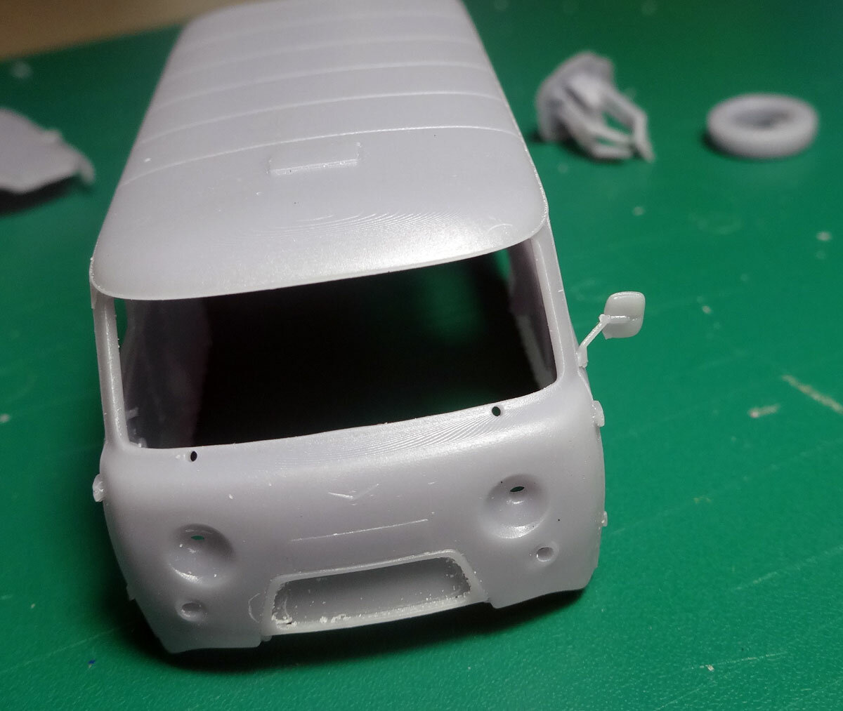 Популярный пост Artman Опубликовано 13 мая, 2024 Автор Популярный пост Жалоба Поделиться Опубликовано 13 мая, 2024 (изменено) Дернул черт попробовать сделать машинку в 72-м. Решил начать с буханочки, как очень подходящей к теме гражданской авиации. Как всегда, мороки оказалось в разы больше ожидаемого, два раз бросал, но потом, передохнув, возвращался и дожал "набор" хотя-бы до печатного состояния. Вчера сделал тестовую печать. Как и ожидалось, первый блин комом. Информации к размышлению много, какие-то намерения придется пересматривать. Во-первых, хотелось сделать "стекла" отдельно, чтобы без проблем красить кузов. Вышло не очень. При печати проемов в стеночках и тонкостенных "стекол" в любом случае не избежать микроискажений, которые в сумме дают то, стекла с проемами нормально не стыкуются. Плюс к тому, следы поддержек по "резинке"- они очень мелкие, но в данном случае все равно мешают и нормально убрать без ущерба для всей детали не получается. Еще и стойки кузова между остеклением вышли довольно тонкими, пока отдирал поддержки половину поломал. Видимо, придется, как и в случае со 144-м - печатать кузов сразу со "стеклами" из прозрачной смолы. Это заодно снимает проблемы искажения проемов и придаст дополнительной прочности всему кузову. Заодно при переделке увеличу зазоры по дверям и панелям кузова. Сейчас все они заданы и довольно широко. Но при печати некоторые совсем слились. Кто-то тут у нас переживал, что расшивка на моделях немасштабная. Так, сделаешь ее масштабной - модель станет гладкой офисной болванкой. При правильной масштабности мелочевки - ее на модели и не будет, это тоже аксиома моделизма, что некоторые детали должны быть переразмерены для возможности их воспроизведения и восприятия на модели. Во-вторых, собственно о тех самых деталях. Сделал отдельной мелочевку - ручки, дворники, фары, светотехнику. Старался таки и некоторую масштабность соблюсти, но и мяса нарастить мелочам. Мало нарастил. Дворники практически не пропечатались, я их даже не стал из поддержек вытаскивать. Спицы руля сломались при первой же попытке их вытащить. Ручки чуть не в два волоска (про спичку вспомнил в последний момент ). Две выкусил и даже на место поставил. В целом интересно, но заднюю успел только сфотографировать и тут же потерял. Не приклеенная была. На макро, кстати, вполне ничего. Пальцами браться - мрак. И пинцет с трудом помогает. Зеркало вполне. Но сколько проживет? В общем - надо реально прощаться с масштабностью мелочей, всем им наращивать "массу тела", чтобы они хоть были сами по себе. Но постараюсь отдельными их сохранить, это во всех отношениях интереснее, чем вместе с кузовом печатать и красить. То же касается и ходовой. Все детали были прилично утолщены. При печати - как будто и нет. Рессоры тоненькие. Мост передний даже и выкусить не успел - переломал. Задний даже и пытаться не стал С колесами хоть нормально. Уже стандартно - шины, диски раздельно. С креслами еще поработать надо, но в целом пойдет. Они тоже все отдельно. Днище в первого раза вщелкнулось в кузов ровно на свое место, хоть тут угадал. Был выбор куда вывести поддержки - пока пожертвовал низом, там и так все достаточно условно. Поэтому низ выглядит так себе. Правда и не очищено до конца - если нормально отскоблить и осколки сдуть - будет лучше. Возможно, надо было печатать вверх ногами, но тогда 